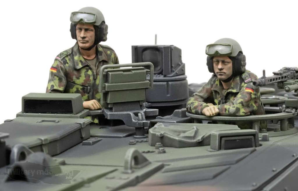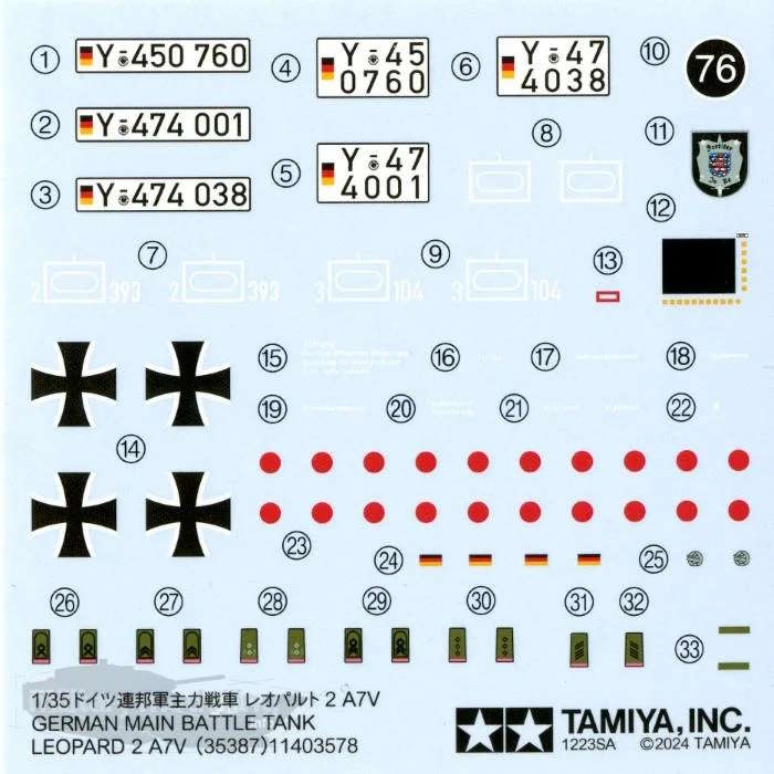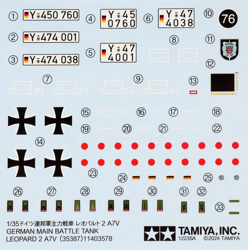 Les marquages inclus pour le système de lancement multiple et le pont moteur du Leopard 2A7V sont également exemplaires. Il convient également de noter en particulier les insignes de classement des personnages inclus.