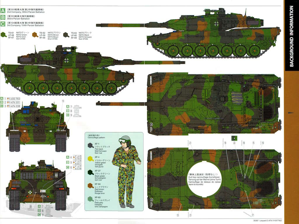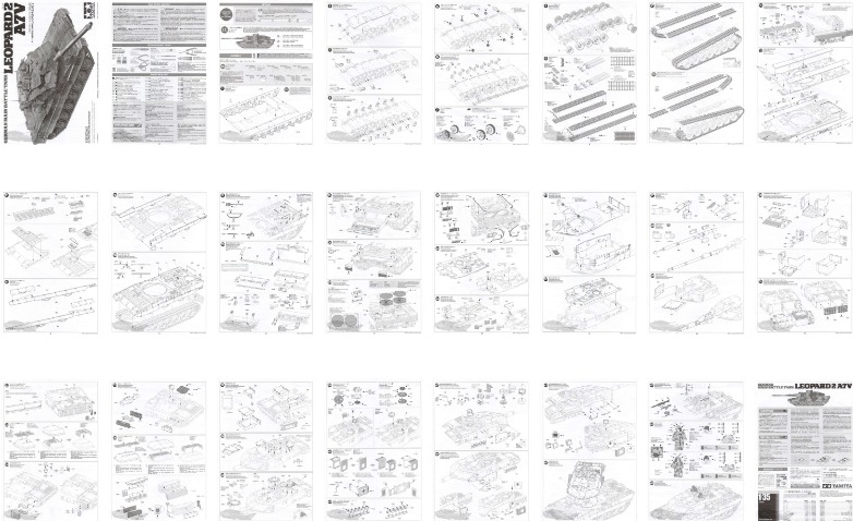Après 49 étapes de construction sous forme de grands dessins 3D clairs, le maquettiste a atteint l'objectif de construire le Leopard 2A7V. Dans l’ensemble, les instructions sont faciles à comprendre, comme d’habitude avec les kits Tamiya. À la fin, vous trouverez quelques conseils pour peindre et appliquer des décalcomanies. En résumé, aucune question ne devrait rester sans réponse ici.