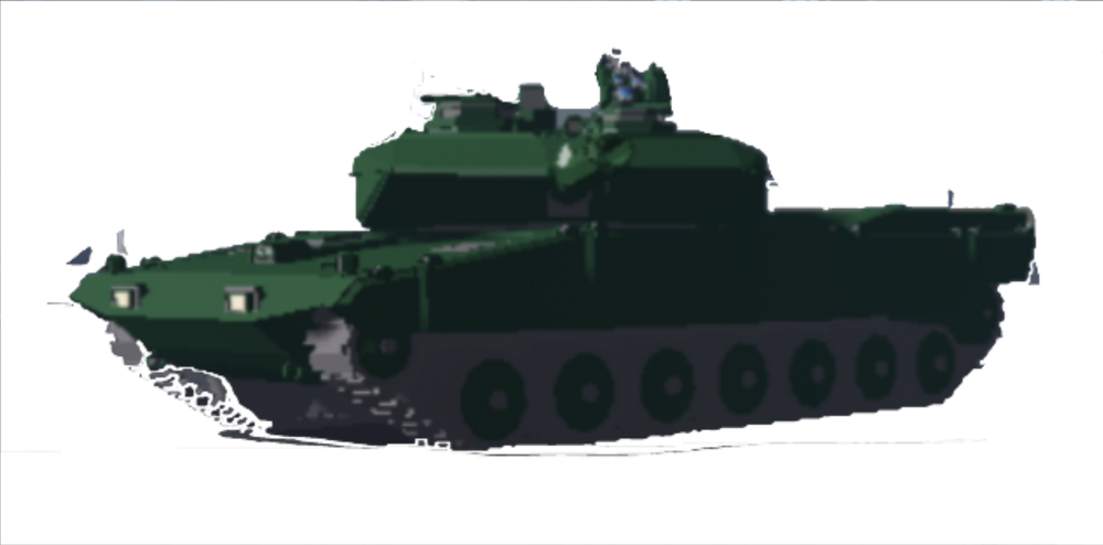 Le côté et l’arrière du char protègent contre les mitrailleuses lourdes, les obus de moyen calibre et les anciens types de munitions de char. Le côté de la caisse est recouvert de jupes de blindage pour augmenter la protection contre les projectiles et les grenades propulsées par fusée (RPG). Le tiers frontal des flancs de la coque est recouvert de lourdes jupes balistiques, tandis que le reste des flancs de la coque est recouvert de jupes en caoutchouc renforcées d’acier. Pour une protection accrue contre les mines, les côtés du plancher de la coque sont inclinés de 45° et le plancher est renforcé par des ondulations.