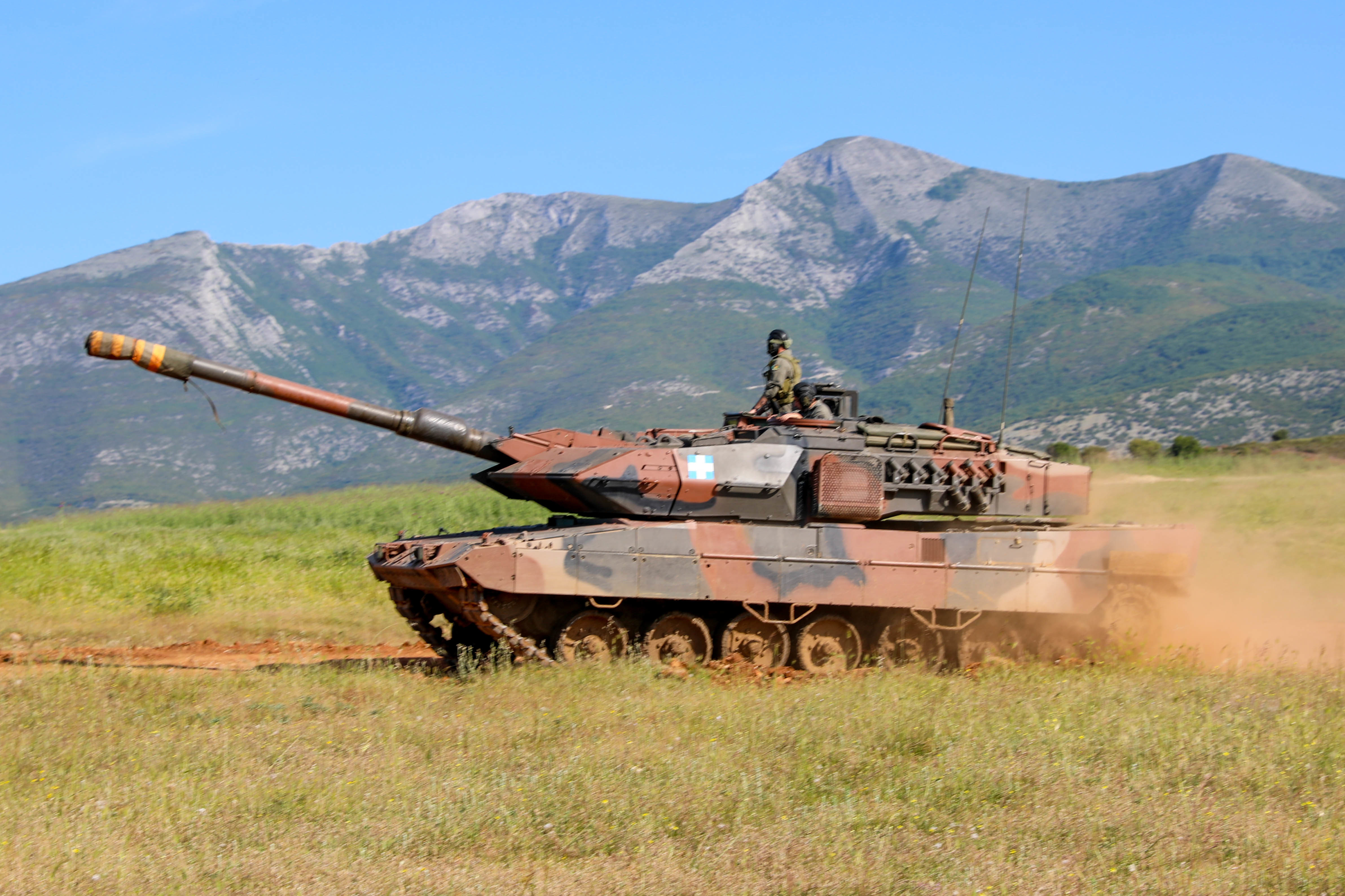 En 1998, la Grèce a organisé un concours pour déterminer le char de combat principal de l’armée hellénique. Le Leopard 2 Improved a réussi à surpasser le Challenger 2E, le Leclerc, le M1A2 Abrams, le T-80U et le T-84 et a été choisi par les officiels grecs. En mars 2003, la Grèce a commandé 170 chars Leopard 2, dont 140 ont été assemblés localement. La Grèce a également acheté 183 chars Leopard 2A4 et 150 chars Leopard 1.