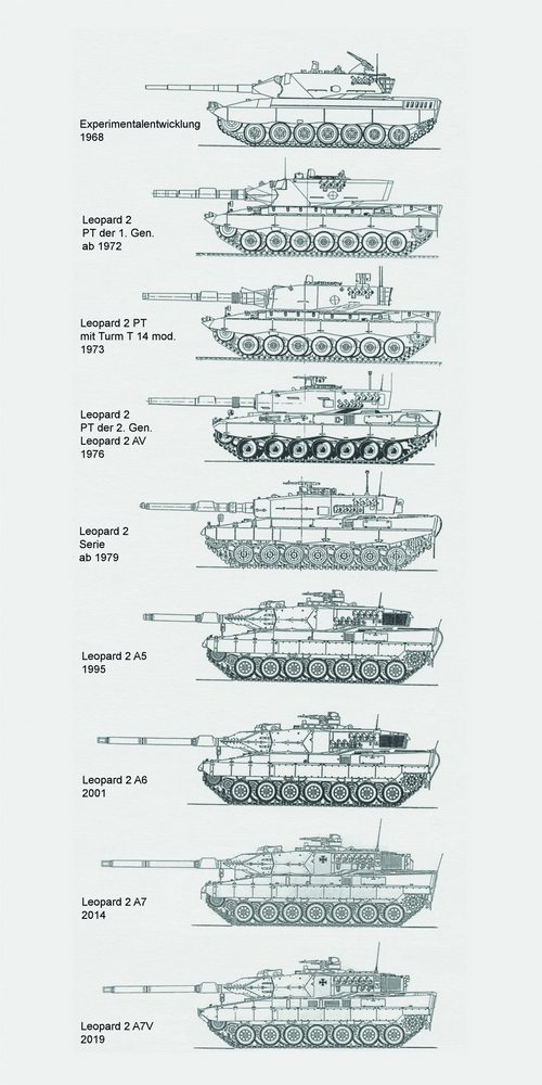 En mai 2017, il a été décidé de donner au char Leopard 2 de la Bundeswehr une mise à niveau sous la forme du Leopard 2A7V ; s’appuyant sur la variante A7, l’A7V dispose d’un blindage avant de coque supplémentaire pour augmenter sa capacité de survie, avec de nouveaux trains roulants pour compenser le poids supplémentaire. Son canon L/55 de 120 mm est un successeur de la variante A6 qui, lorsqu’elle utilise les munitions les plus récentes, peut affronter le blindage ennemi jusqu’à 5 kilomètres de distance. Parmi les autres évolutions de conception, citons un dispositif de visée pour amplifier la vision en cas de mauvaise visibilité, de nouvelles chenilles et un nouveau panier arrière de tourelle. 104 chars existants doivent être mis à niveau vers la spécification A7V, et les unités ont commencé à les recevoir en septembre 2021.
