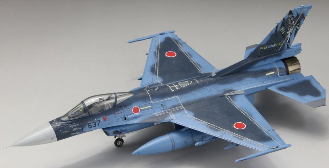 un Mitsubishi F-2. Il apparaissait sous le nom de FS-X, qui était alors en cours de développement. Il a un design similaire à la version domestique des premiers stades du projet, avec des fonctionnalités telles que des ailes de canard.