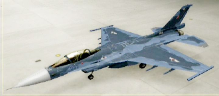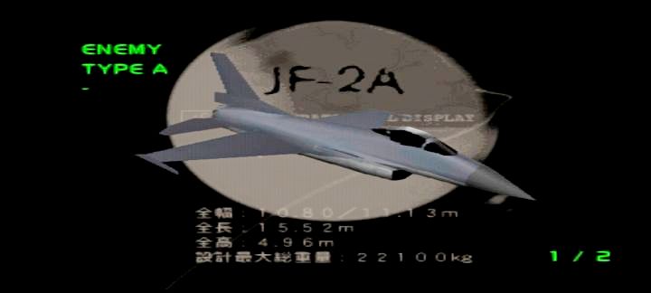 un Mitsubishi Heavy Industries F-2A Viper Zero. Il apparaît également dans « Ace Combat 2 » en tant qu'avion à processeur uniquement sous le nom de « JF-2 ».