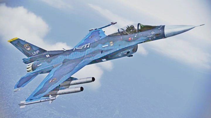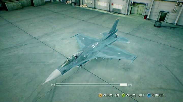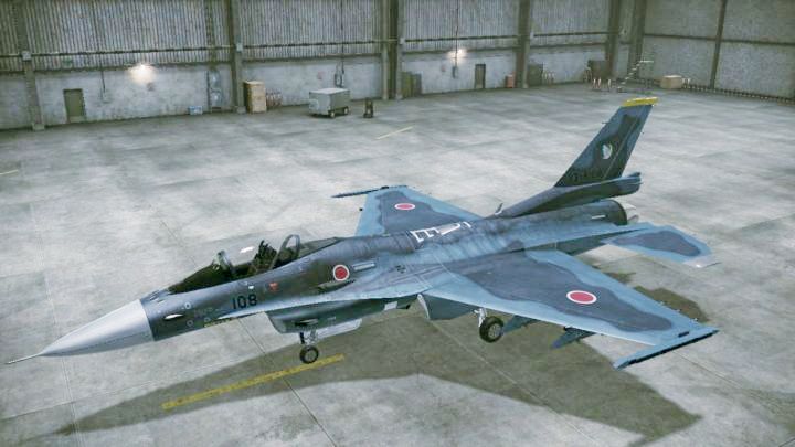 un Mitsubishi F-2A/B. Le F-2A/B apparaît comme l'un des avions que le joueur peut embarquer, et bien qu'il n'ait pas la capacité de faire fonctionner l'AAM-4, il peut faire fonctionner l'AAM-5, le GCS-1, l'ASM-1, l'ASM-2, fusées, etc. En plus de la peinture standard de l'avion et de celle qui imite la peinture du 50e anniversaire du 3e escadron, il y aura également une version acrobatique de la version d'interception F-2 et une version Blue Impulse peinte en gris. De plus, dans le plan de déploiement actuel du F-2, son déploiement sur Blue Impulse a été rejeté comme prématuré car il n'y avait pas de place pour le développement en tant que FX pour remplacer le F-4.