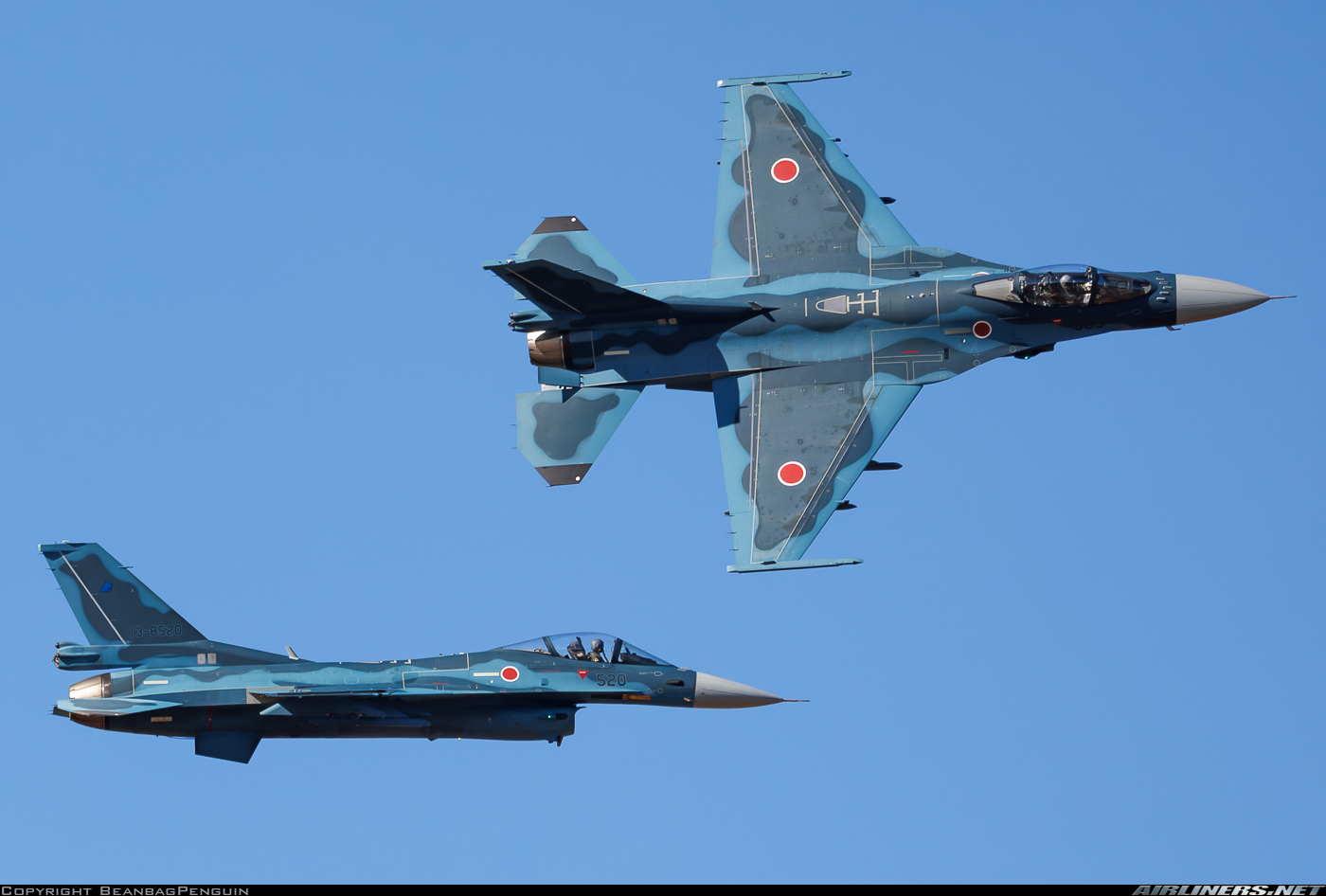 Le Mitsubishi F-2 est un chasseur multirôle dérivé du General Dynamics F-16 Fighting Falcon, et fabriqué par Mitsubishi Heavy Industries et Lockheed Martin pour la Force aérienne d’autodéfense japonaise, avec une répartition 60/40 de la fabrication entre le Japon et les États-Unis. La base de la conception du F-2 est le F-16 Agile Falcon, une offre infructueuse de General Dynamics pour fournir une alternative à faible coût pour la compétition de chasseurs tactiques avancés (ATF). La production a commencé en 1996 et le premier avion est entré en service en 2000.