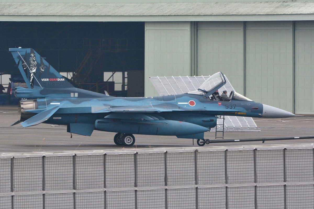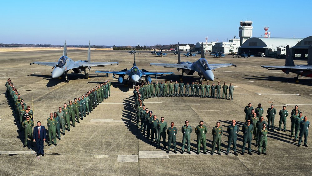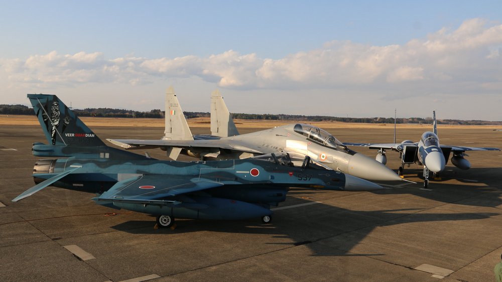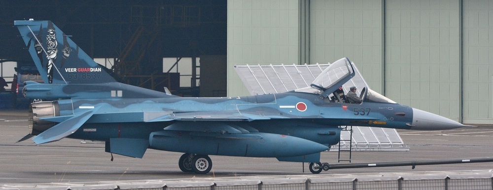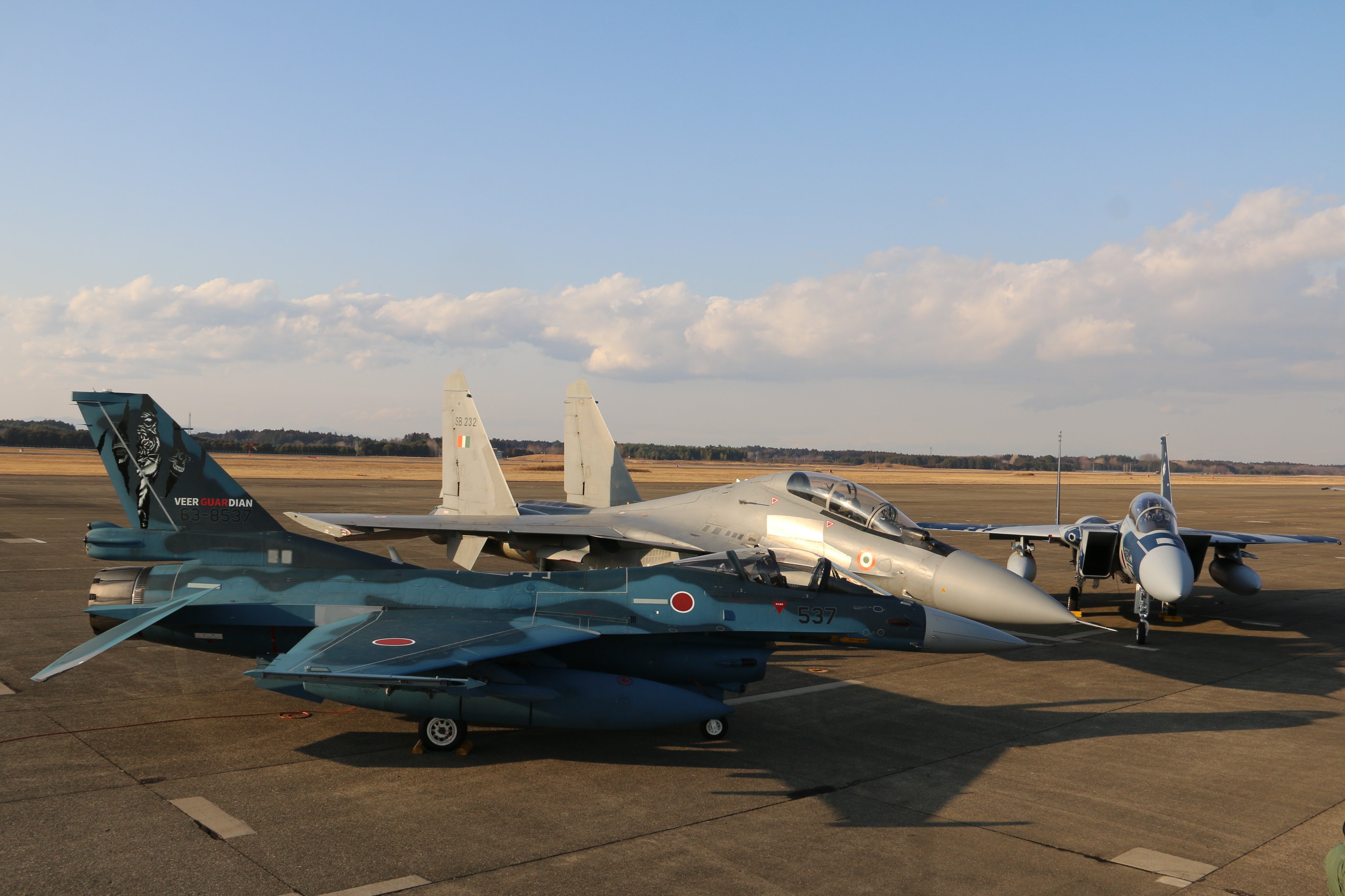 A cette époque, Flanker a été accueilli avec les marques des 3 unités qui ont participé à l'entraînement : Musha (3e Escadron de l'ASDF), Tiger (220e Escadron de l'Indian Air Force) et Skull (Unité d'agresseur de l'ASDF). Comprend un avion de combat F-2A « Code avion : 63-8537 » et un F-2B « 23-8111 ». Le F-2B a volé avec le lieutenant-général de l'armée de l'air Pankaj Mohan Sinha, commandant du Western Air Command de l'armée de l'air indienne, sur la banquette arrière (piloté par un pilote de la Force aérienne d'autodéfense).