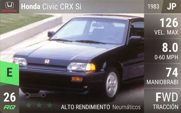 une Honda CR-X 1984. Nom dans le jeu : CS-V.