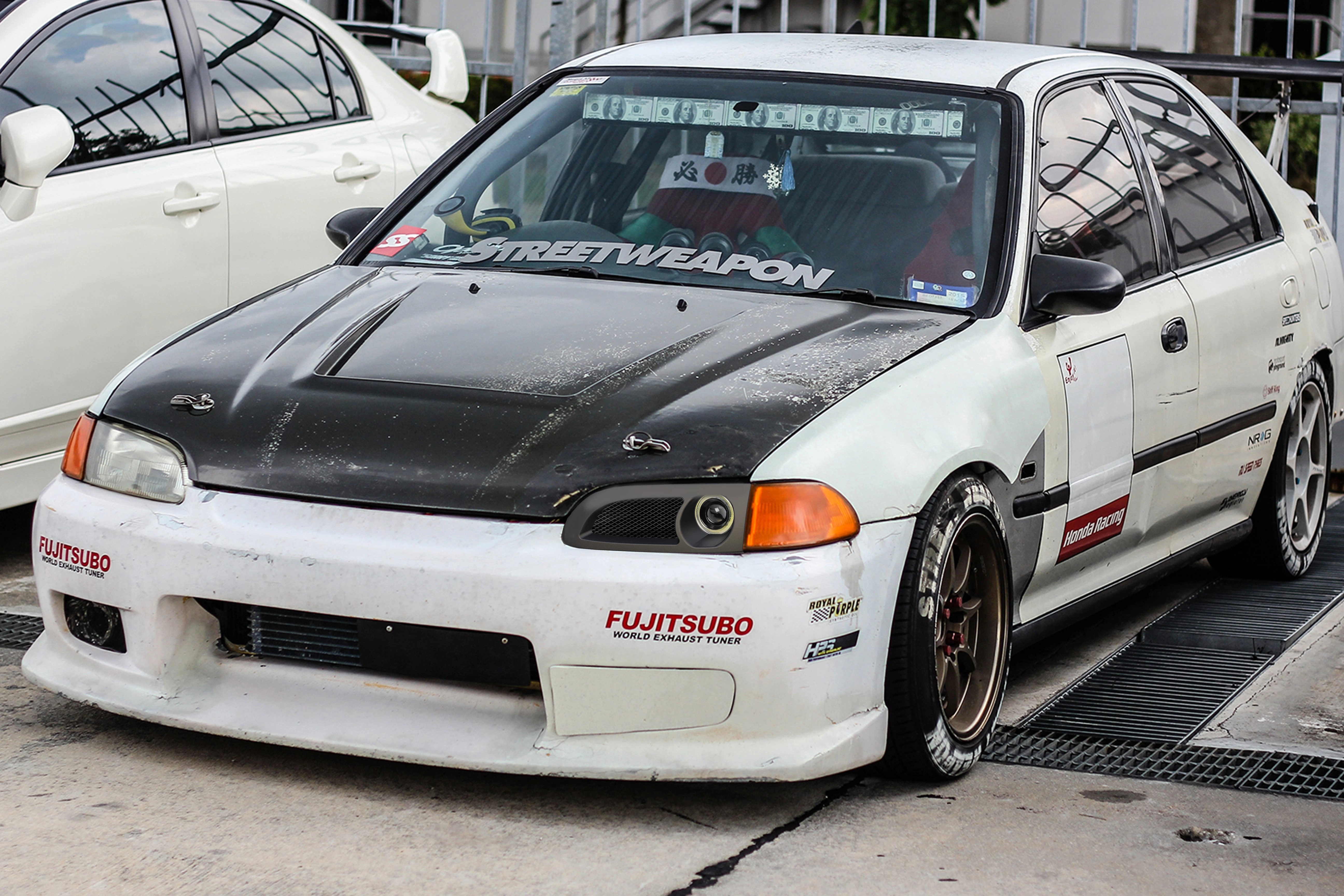 Ryu note également un détail si subtil que la plupart des gens l’ignoreraient. L’enjambement entre le nez du capot et le pare-chocs avant est plus court que celui d’origine. C’est excellent pour l’aérodynamisme et l’apparence, et ce que toute entreprise normale ferait, c’est simplement réduire la profondeur du pare-chocs. Cependant, c’est du Japon de l’ère Bubble dont nous parlons, donc à la place, Mugen a allongé tout le nez. Les marqueurs latéraux du kit Mugen sont en fait situés à environ 1 pouce en avant du passage de roue, ce qui fait apparaître les puits de phares plus profonds.