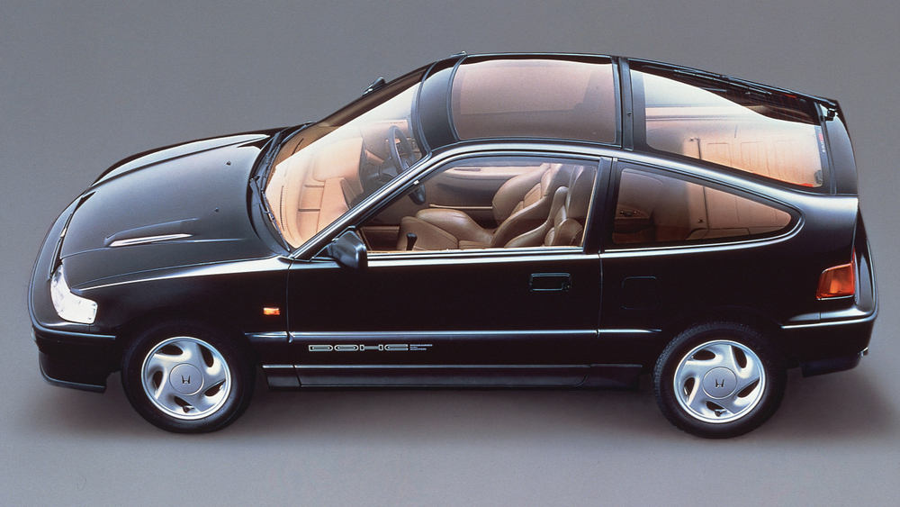 L’une des options pour le CR-X du marché intérieur japonais (JDM) était un toit en verre, un panneau de verre fixe qui s’étendait du haut du pare-brise au haut de l’ouverture du hayon. Relativement courants au Japon, ce sont des modèles recherchés sur d’autres marchés.