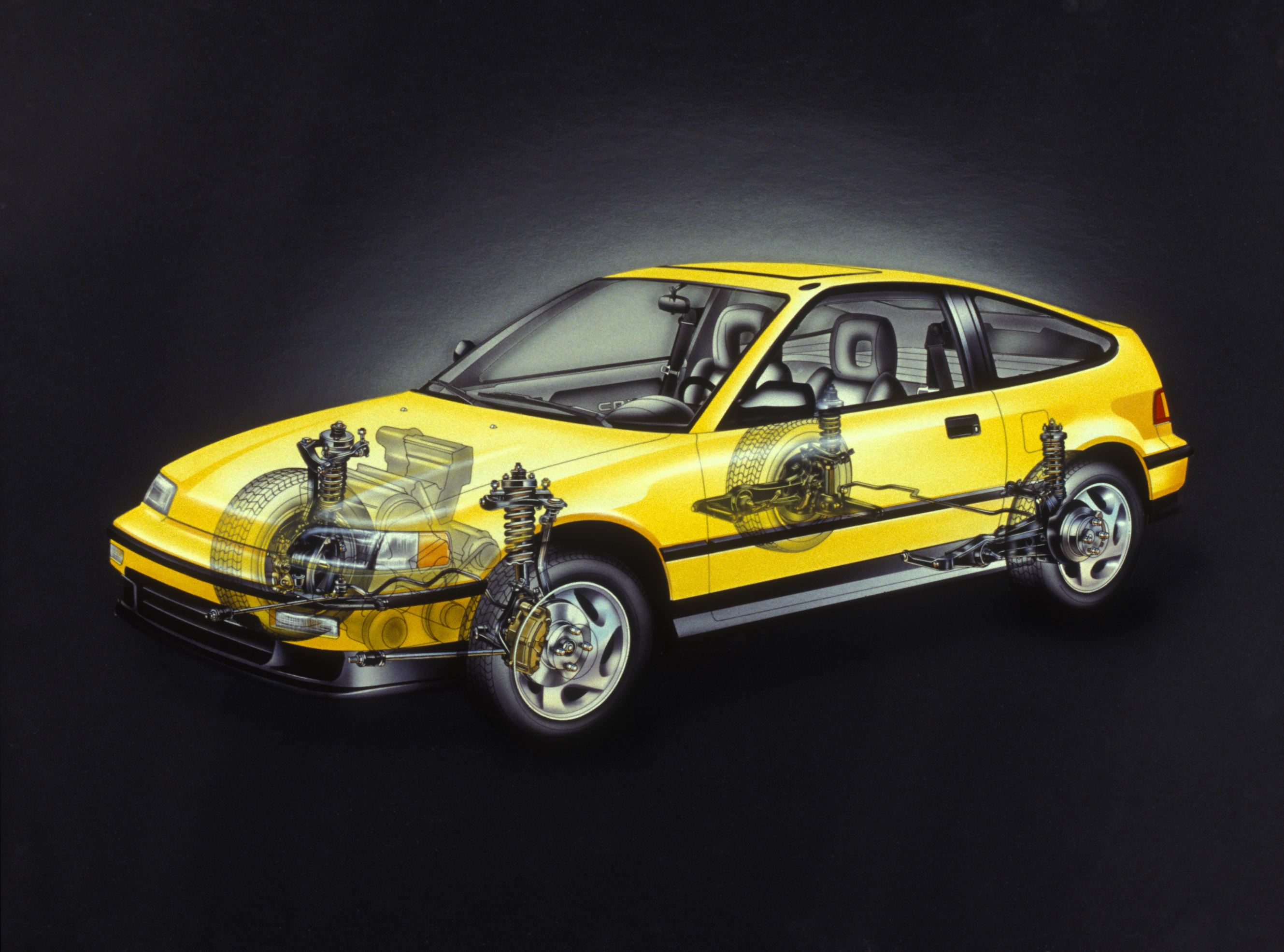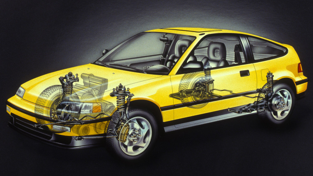 Le Honda CR-X a été entièrement redessiné à la fin de 1987 pour l’année modèle 1988. L’empattement a été augmenté de 4 pouces (102 mm) hors tout, la longueur a été augmentée de 3,2 pouces (81 mm) et la largeur est près de 2 pouces (51 mm) plus large que le modèle précédent. La suspension a été entièrement redessinée. Honda a abandonné la barre de torsion d’origine à l’avant et l’essieu à poutre avec lien arrière au profit d’une suspension à double triangulation aux 4 roues. La conception plus grande et la suspension révisée ont apporté des améliorations à la maniabilité ainsi qu’à l’espace pour les passagers et le chargement par rapport à la génération précédente.