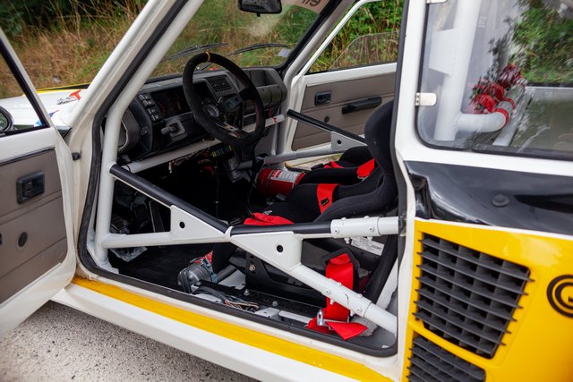 Comme pour les autres versions spécifiques, la caisse est renforcée « asphalte » avec un arceau de sécurité 10 points homologué, installé d'origine par Renault Sport. On trouve aussi des sièges baquets légers de type « Stand 21 », 2 harnais, un volant et un moyeu de type « Moto-Lita ».