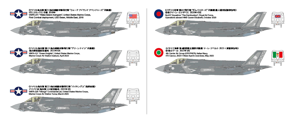 Le F-35 Lightning II est un avion ambitieux de 5e génération qui vise à répondre aux besoins des différentes armées américaines via 3 variantes différentes, dont la plus aventureuse est peut-être le F-35B qui combine une observabilité extrêmement faible et une connaissance de la situation exceptionnelle avec une capacité de décollage court et d’atterrissage vertical (STOVL) facilitée par un ventilateur de portance positionné entre le moteur et le cockpit. Cela lui permet d’opérer à partir de plus petites limites telles que des navires d’assaut amphibies, des porte-avions légers et des aérodromes avec un espace de piste limité. Son déploiement est prévu non seulement par le Corps des Marines des États-Unis, mais aussi par les forces aériennes britanniques et italiennes. Observez de près ce qui fait vibrer cet avion fascinant grâce à notre modèle détaillé et précis à l’échelle 1/72.