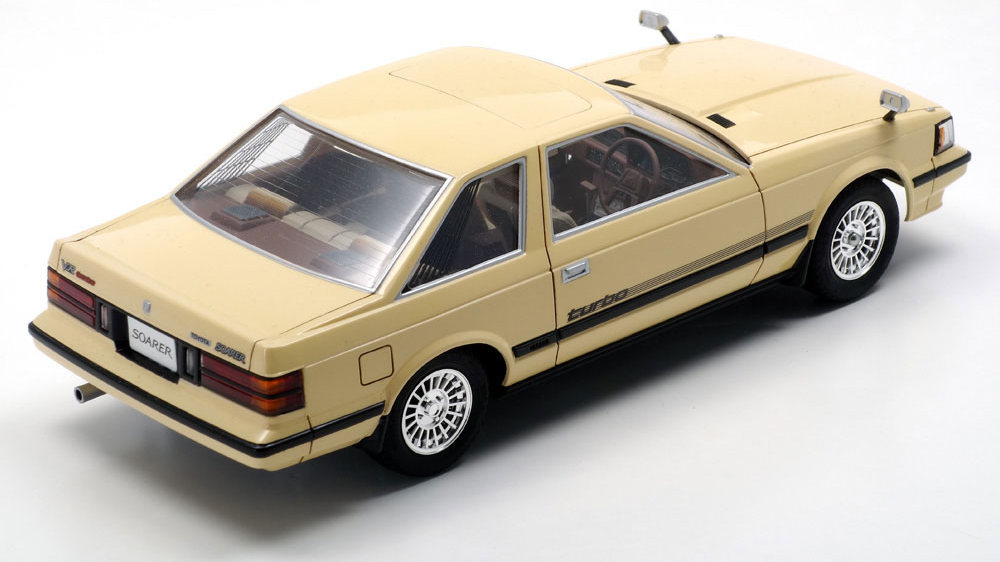 La Toyota Soarer a fait ses débuts en février 1981 en tant que première voiture de luxe personnelle de Toyota et a impressionné les conducteurs avec son long nez, sa forme courte, son moteur 6 cylindres en ligne avancé et son électronique haut de gamme. En juin de la même année, la gamme Soarer a été rejointe par la version VR-Turbo, qui utilisait un moteur turbo 6 cylindres en ligne de 2 litres à SACT, une transmission automatique à 4 vitesses, ainsi qu’une suspension indépendante aux 4 roues avec jambe de force à l’avant et des configurations semi-traînées à l’arrière. À l’intérieur de l’habitacle, l’œil était attiré par son compteur numérique avec un indicateur spécial pour indiquer l’efficacité du turbo, tandis que le luxe était garanti par des caractéristiques telles que le volant en cuir véritable. La Soarer est souvent reconnue comme l’une des voitures de luxe les plus importantes des années 1980 et a été l’une des pionnières des voitures de luxe Toyota.