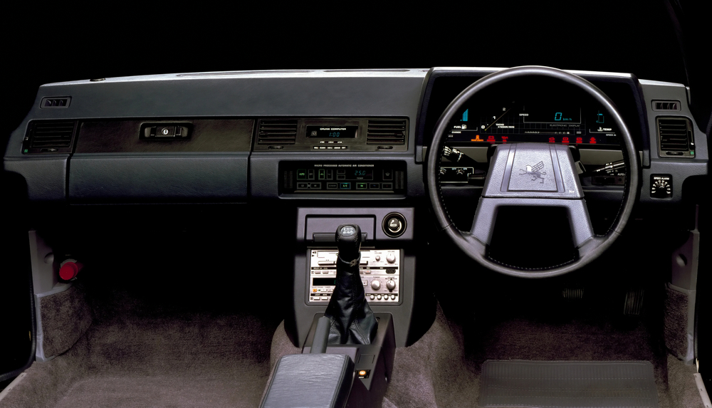 La cassette stéréo AM/FM avait la capacité d’enregistrer sur des bandes métalliques de meilleure qualité. Sur la face de la chaîne stéréo se trouvait une prise microphone qui pouvait accueillir un microphone. S’il était installé avec un tableau de bord numérique, un ordinateur de bord était inclus. Le groupe numérique comprenait un tachymètre numérique, un indicateur de vitesse numérique, des jauges électroniques de carburant et de niveau de liquide de refroidissement. L’ordinateur de bord pouvait calculer et afficher divers éléments tels que l’économie de carburant en kilomètres par litre, l’heure d’arrivée estimée (ETA) et la distance restante jusqu’à la destination. Il était proposé en 4 couleurs extérieures avec des intérieurs contrastants gris foncé ou brun foncé, tandis que les 6 ensembles de finition offraient des équipements optionnels de série sur les 3 ensembles de niveau supérieur. Les noms des packs de finition étaient les 2800GT-Extra, 2800GT, 2000VX, 2000VR, 2000V II avec l’entrée de gamme 2000V I.