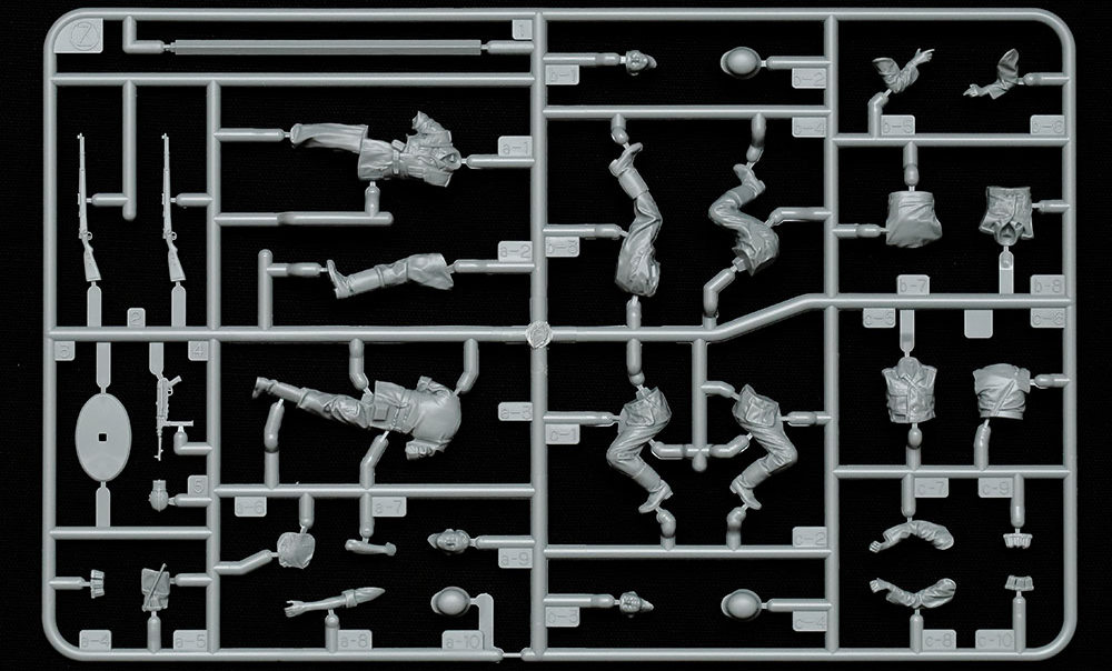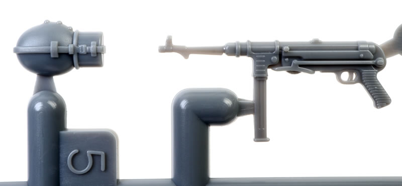 Les fusils KAR 98K et la mitrailleuse MP 40 sont nettement détaillés. Ils ont fière allure.