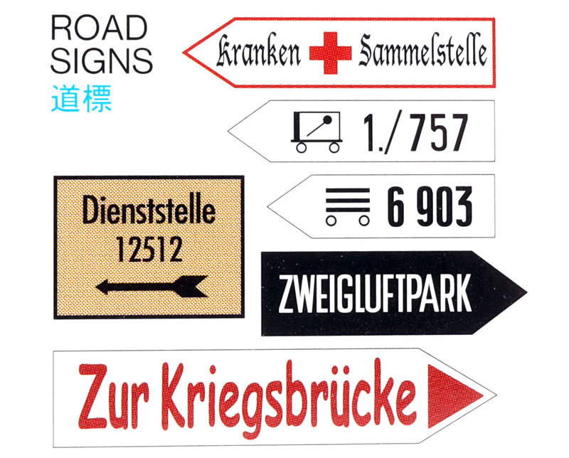 La petite feuille de décalcomanie propose 5 plaques d'immatriculation - 3 Wehrmacht et 2 Luftwaffe - bien que les uniformes de Luftwaffe ne soient pas fournis.