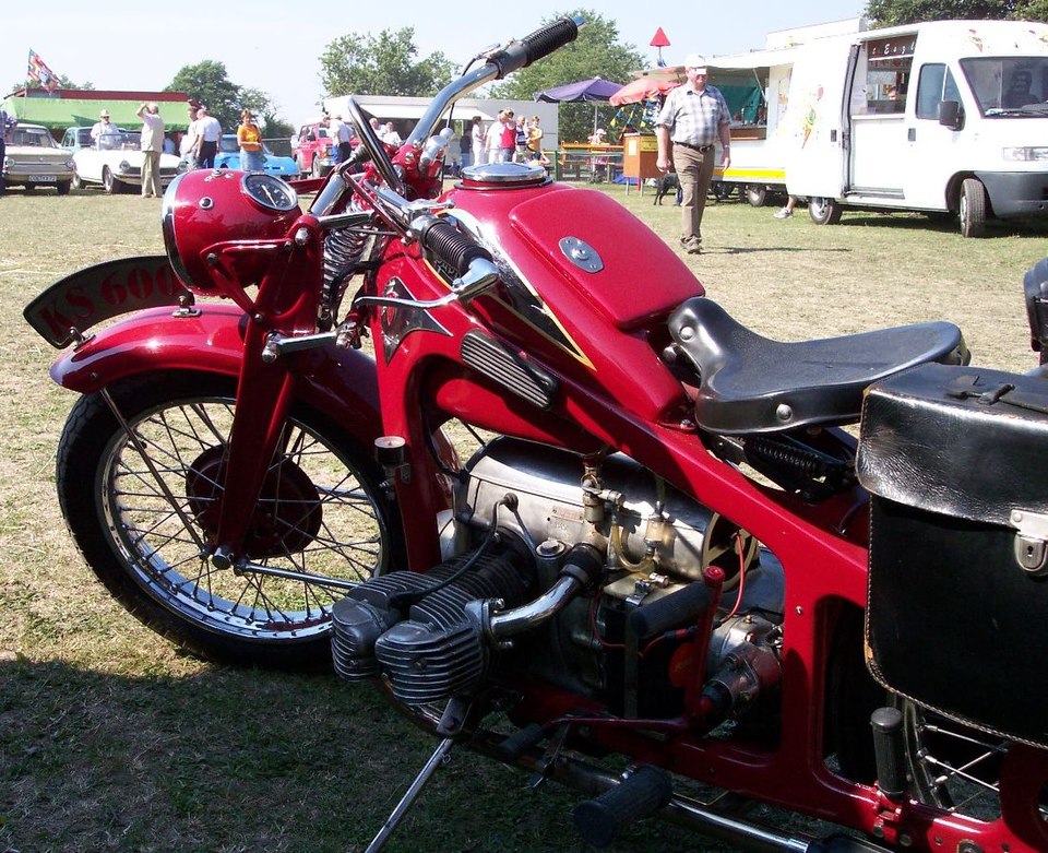 Peut-être la plus célèbre des motos de la classe 600 cc déployée par l’armée allemande pendant la Seconde Guerre mondiale, la KS 600 a été construite autour d’un moteur opposé horizontalement de 28 ch avec transmission par arbre. Avec un side-car attaché, elle pouvait atteindre jusqu’à 96 km/h et grâce à son réservoir de carburant de 15 litres, elle avait une autonomie de 300 km. La production a commencé en 1938 et elle a été utilisée dans des rôles de répartition et de reconnaissance dès les premiers stades de la Seconde Guerre mondiale. Bien que la production ait cessé en 1941, les KS 600 restantes sont restées en service jusqu’à la seconde moitié du conflit.