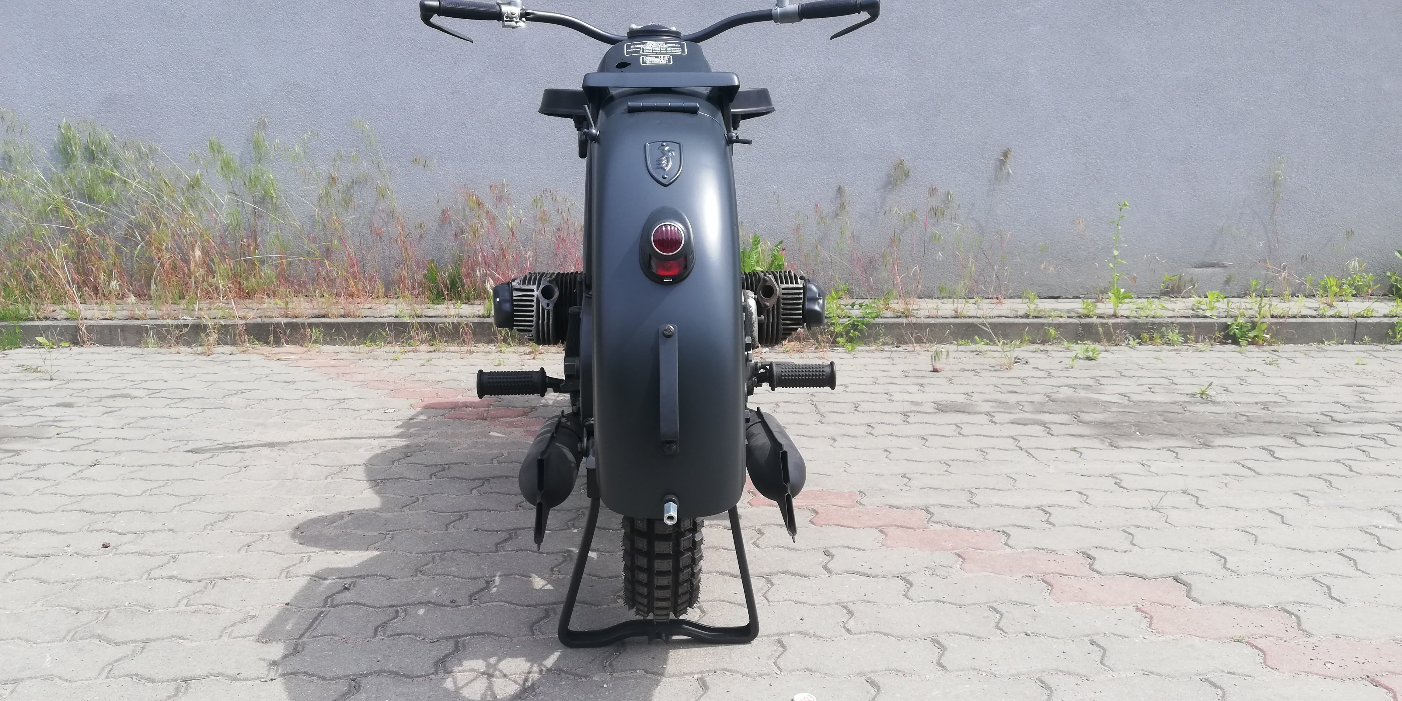 La machine était équipée d’un moteur Boxer à 2 cylindres à 4 temps avec un carburateur British Amal, d’un système de feux d’allumage de 6 volts, d’un embrayage à sec multidisque, d’une transmission par chaîne à quatre vitesses et d’une transmission par arbre. Selon le mode d’emploi, le changement de vitesse s’effectuait soit à la main, soit avec le pied. L’allumage devait être réglé à la main. La roue avant était suspendue à une fourche trapézoïdale avec 2 ressorts de compression et d’abord des amortisseurs à friction, puis des amortisseurs hydrauliques. En dehors de la fourche, seule la selle à 2 ressorts était suspendue. Le cadre était rigide à l’arrière.
