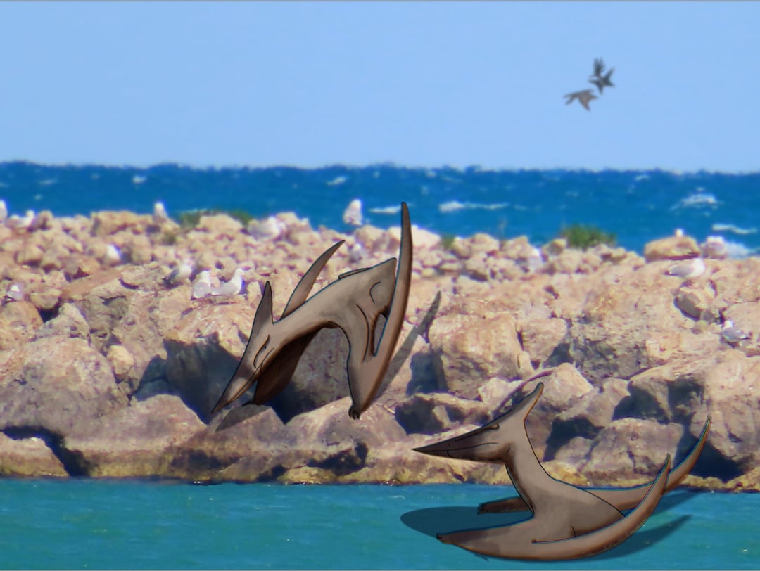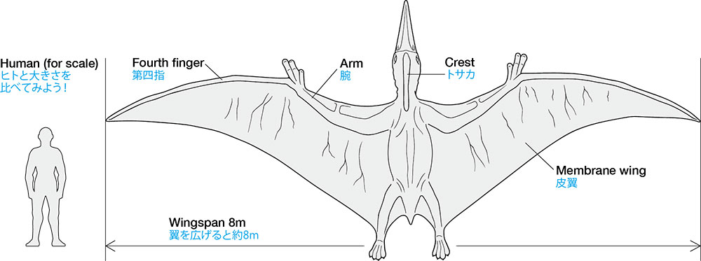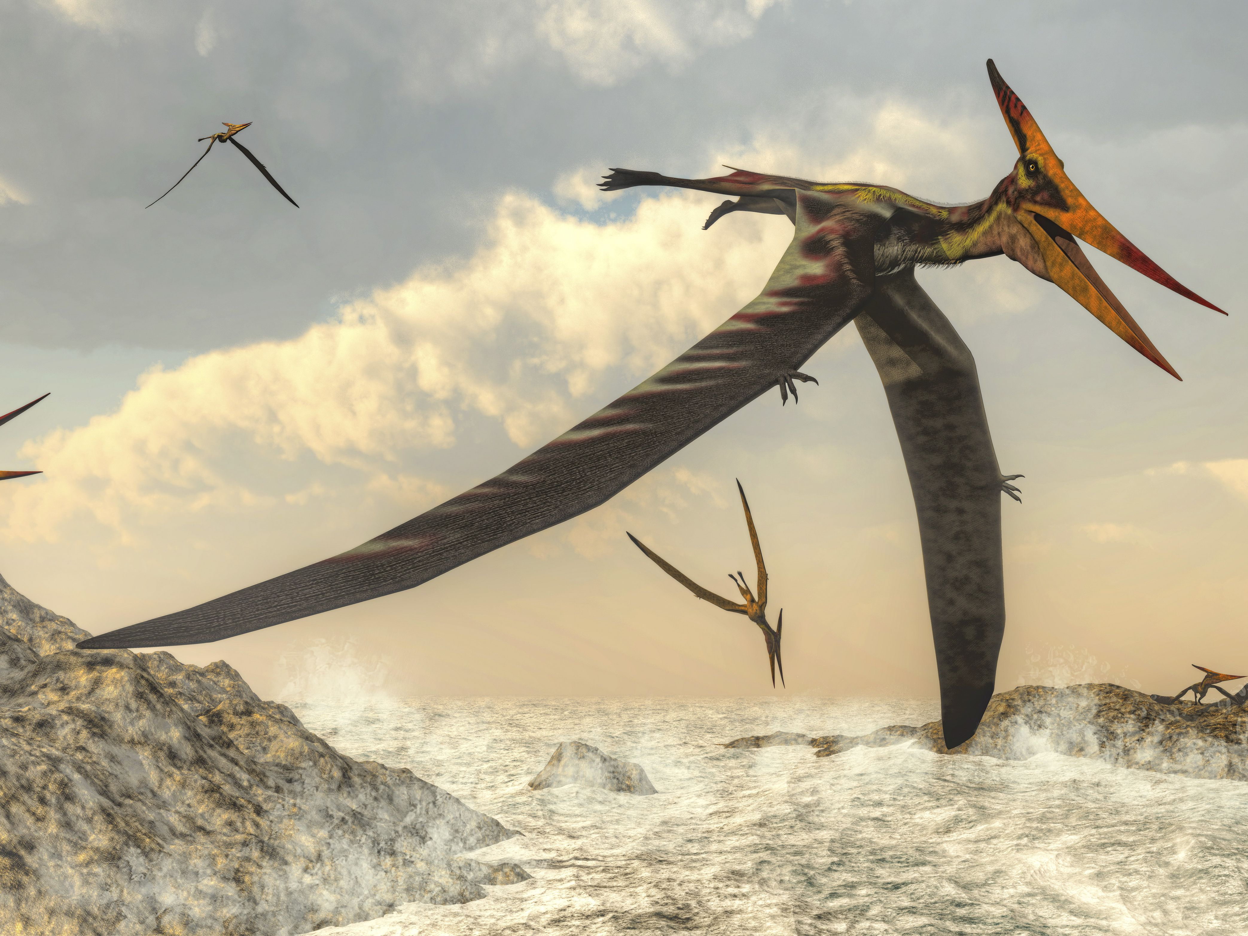 Les dinosaures et les ptérosaures dominaient la Terre au cours de l'ère mésozoïque, et le ptéranodon ailé était un type de ptérosaure qui vivait vers la fin du Crétacé (il y a environ 85 millions d'années). Alors que son envergure était de 6 à 8 mètres, il ne pesait qu'environ 20 kilogrammes ; une membrane tendue depuis le quatrième doigt de leur main leur permettait de voler. Ils descendaient du ciel pour attraper leurs proies, parmi lesquelles on pense qu'il s'agissait de poissons.