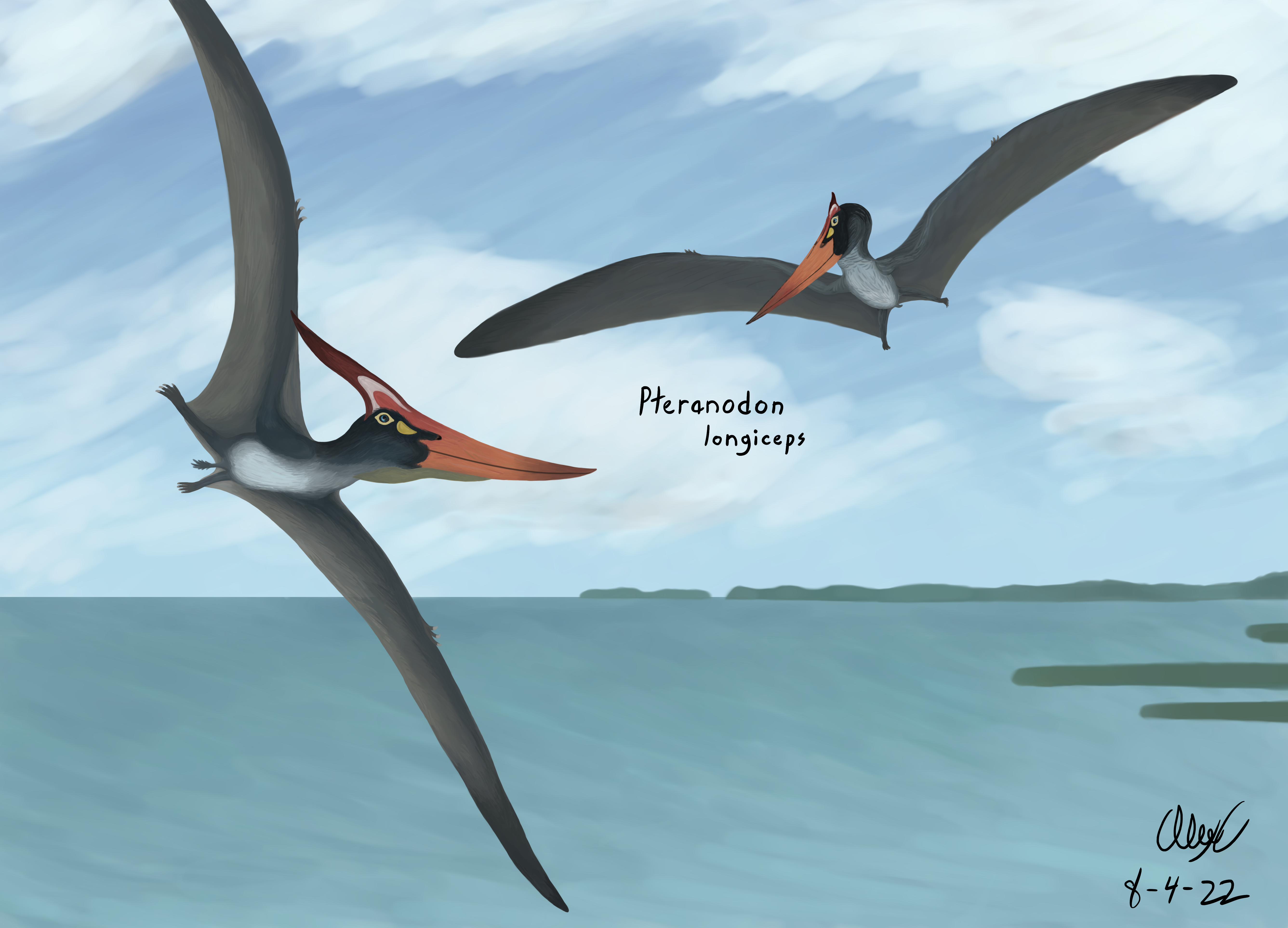 Le Ptéranodon (/təˈrænədɒn/ ; du grec ancien : πτερόν, romanisé : pteron « aile » et ἀνόδων, anodon « édenté ») est un genre de ptérosaure qui comprenait certains des plus grands reptiles volants connus, P. longiceps ayant une envergure de plus de 6 m (20 pi). Ils ont vécu pendant la période géologique de la fin du Crétacé de l’Amérique du Nord dans les actuels Kansas, Nebraska, Wyoming, Dakota du Sud et Alabama. Plus de spécimens fossiles de Ptéranodon ont été trouvés que tout autre ptérosaure, avec environ 1'200 spécimens connus de la science, beaucoup d’entre eux bien conservés avec des crânes presque complets et des squelettes articulés. Il s’agissait d’une partie importante de la communauté animale de la Voie maritime intérieure de l’Ouest.