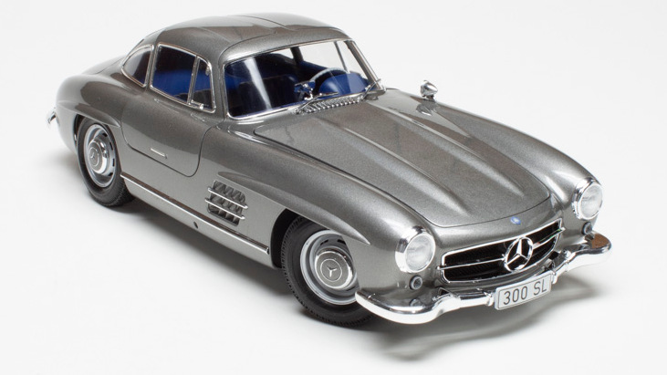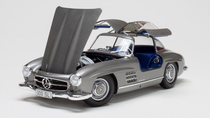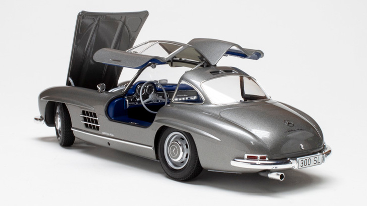 La 300 SL a été lancée en 1954, la version de série d’un prototype de course très réussi de 1952. Il présentait une carrosserie élégante avec des portes ailerettes en mouette, ainsi qu’un cadre spatial léger multi-tubulaire. Un moteur 6 cylindres en ligne de 3 litres a été pionnier de l’injection directe de carburant. Sa combinaison d’apparence et de puissance pionnière en fait un favori même aujourd’hui, et vous pouvez voir ce qui le fait vibrer avec cette version spéciale « vue complète » du modèle.
