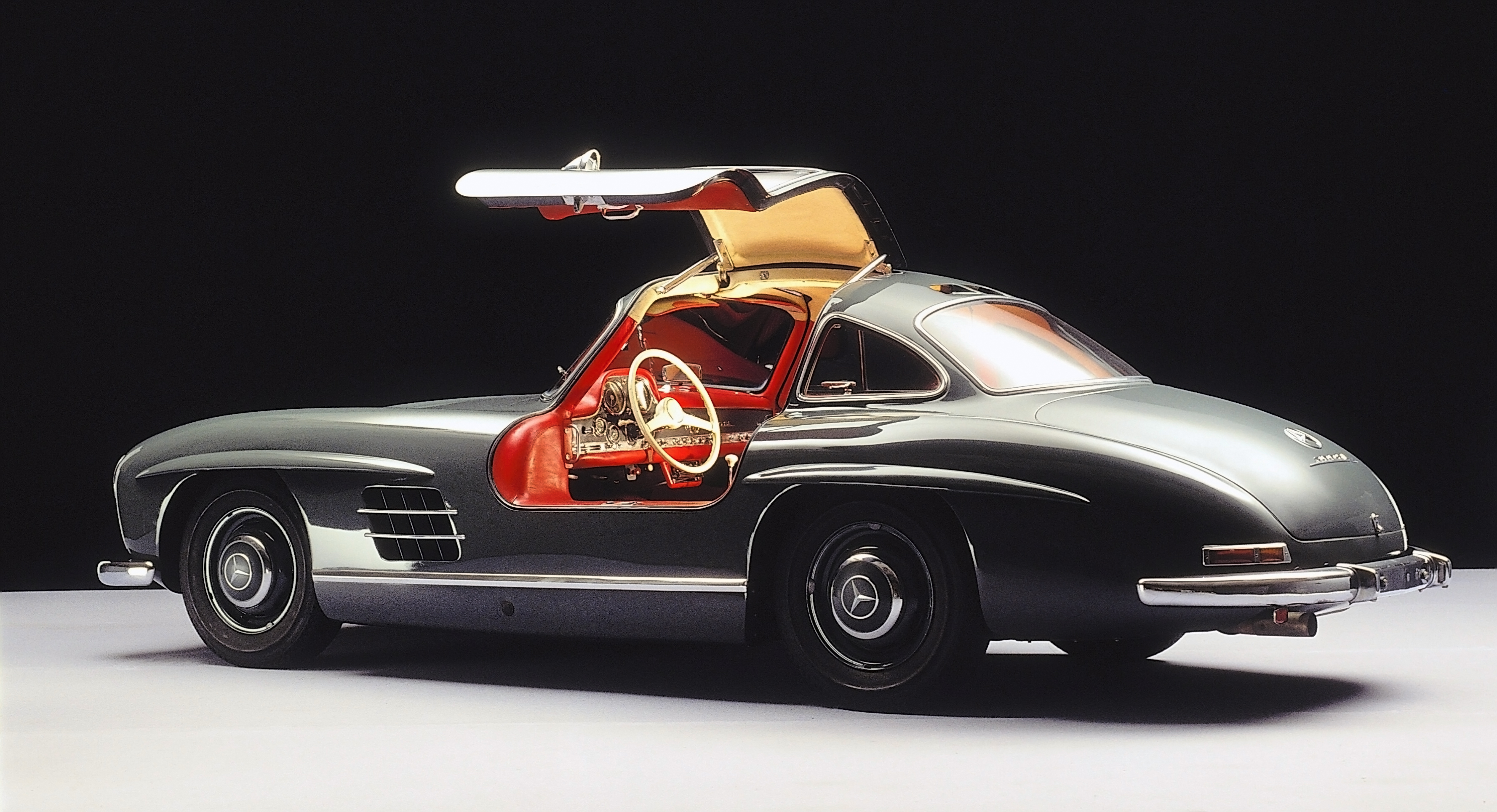 La 300 SL était capable d’atteindre 260 km/h (162 mph), ce qui lui a valu la réputation d’être championne de course de voitures de sport et d’en faire la voiture de série la plus rapide de son époque. Les portes papillon emblématiques de la voiture et la construction innovante du cadre tubulaire léger étaient révolutionnaires.